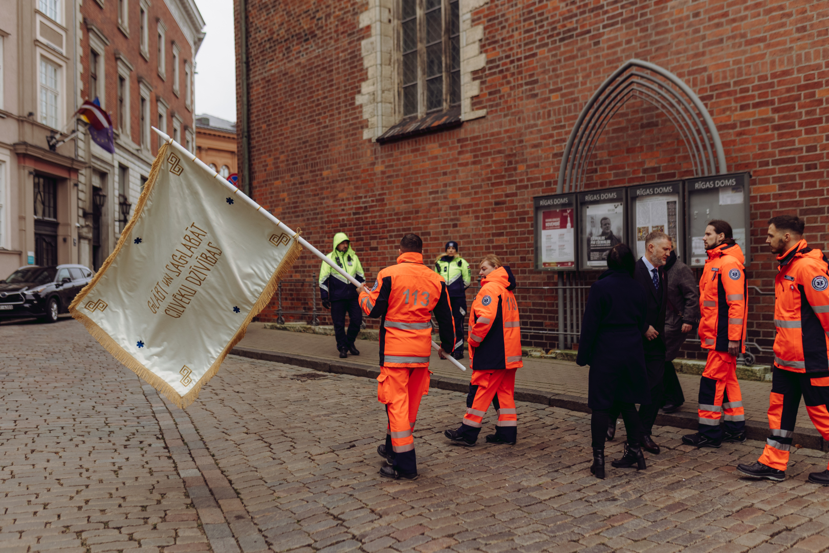 Arī karoga iesvētīšanas vieta bija izvēlēta īpaši pārdomāti – Rīgas Doms ar vairāk nekā 800 gadu senu vēsturi. Netālu atrodas Jēkaba kazarmas, kur pirms vairāk nekā simts gadiem darboties sāka Rīgas Ātrā ārsta palīdzība, un šajā apkārtnē risinājušies daudzi valstij nozīmīgi notikumi, kuros mediķi vienmēr bijuši klātesoši, arī barikāžu laikā. Šī vietas un vēstures saikne kalpo kā spēcīgs atgādinājums, ka neatliekamās palīdzības darbs ir daļa no plašāka stāsta par cilvēkiem, kuri stāv sardzē par dzīvību cauri laiku laikiem.